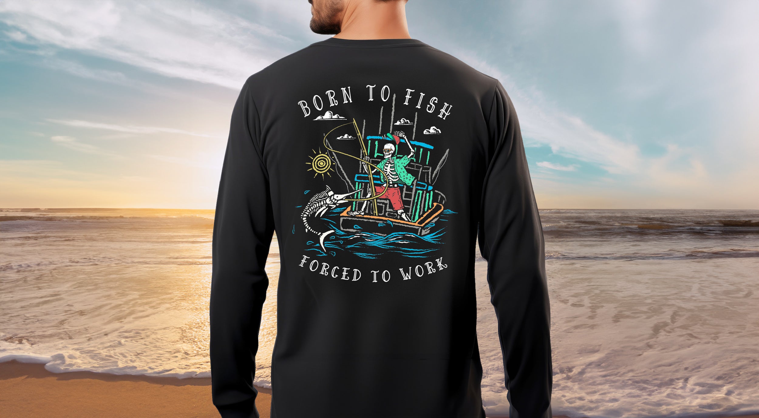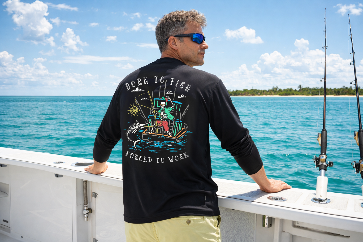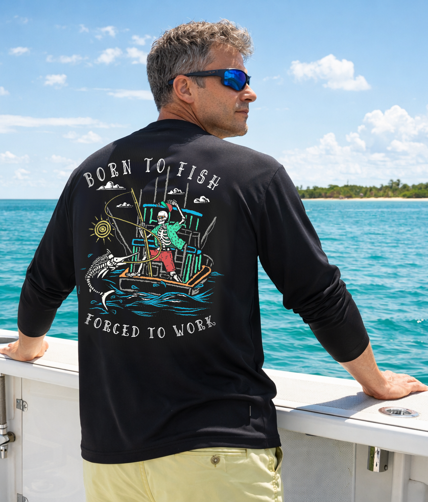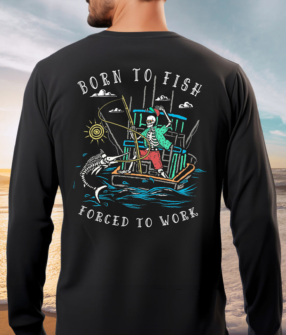 Salty Bones Born to Fish Forced to Work Fishing Boat T-Shirt
