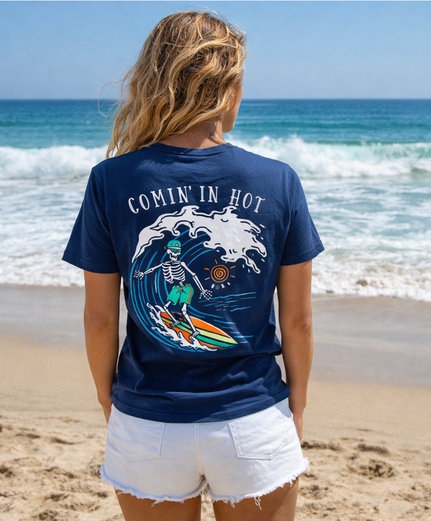 Salty Bones Comin' in Hot Surfer Ocean Wave Beach T-Shirt