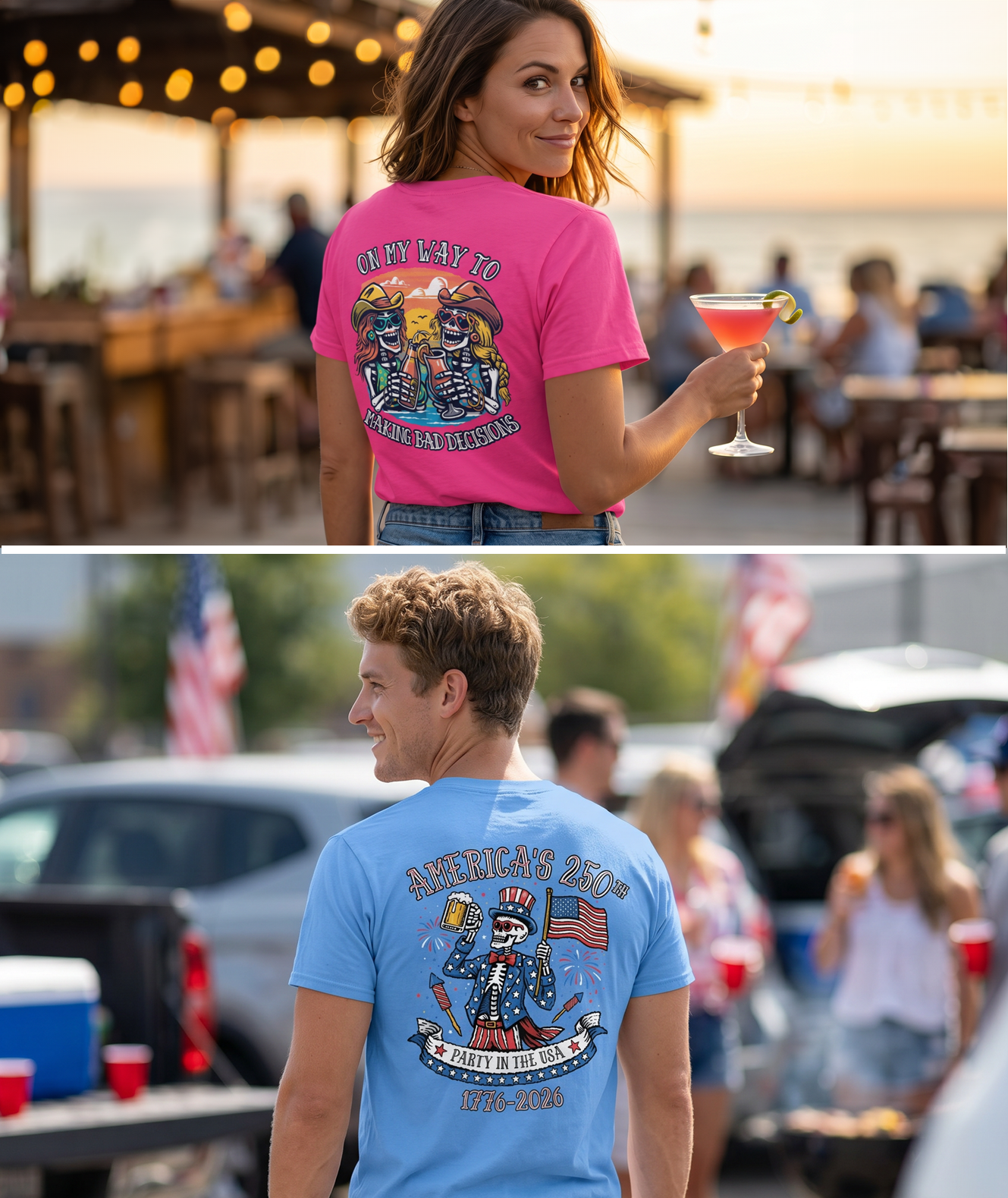 Salty Bones On My Way To Making Bad Decisions Women Drinking Beach Graphic T-Shirt